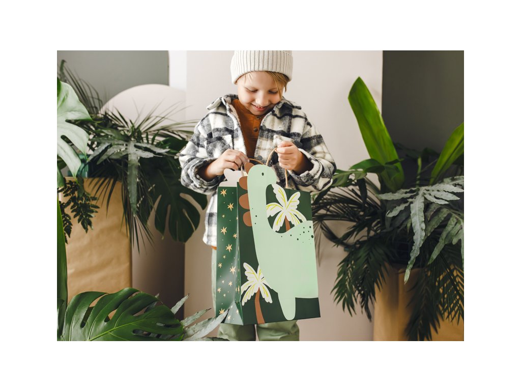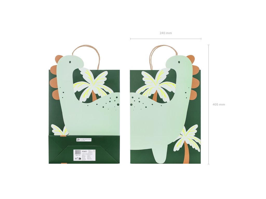 Taška je vyrobena z odolného papíru a díky svým rozměrům 10 × 24 × 37 cm pojme i větší hračky, sladkosti nebo párty doplňky. Perfektní balení pro každou dinosauří párty nebo narozeniny.
